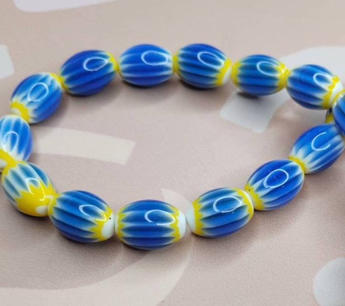 Бусина керамика 14х8 мм желто-голубая