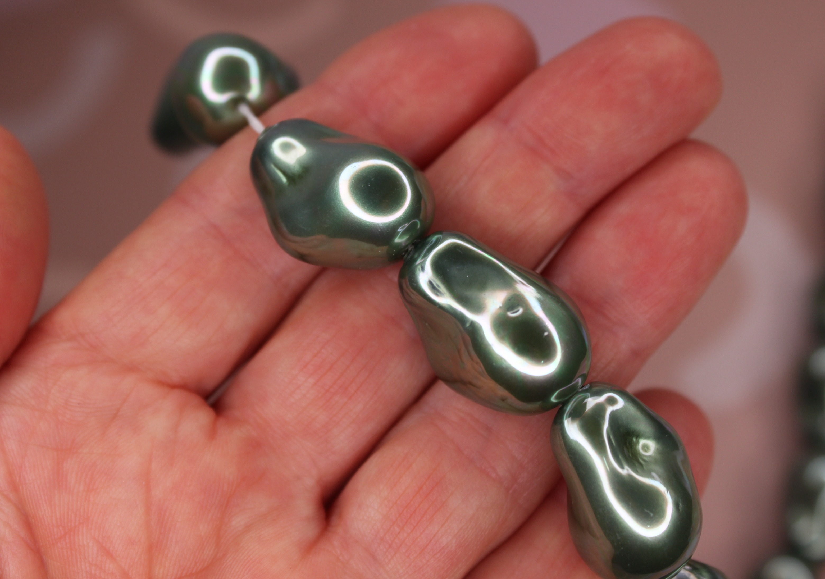 Бусина майорка зеленый изумруд 22х15 мм