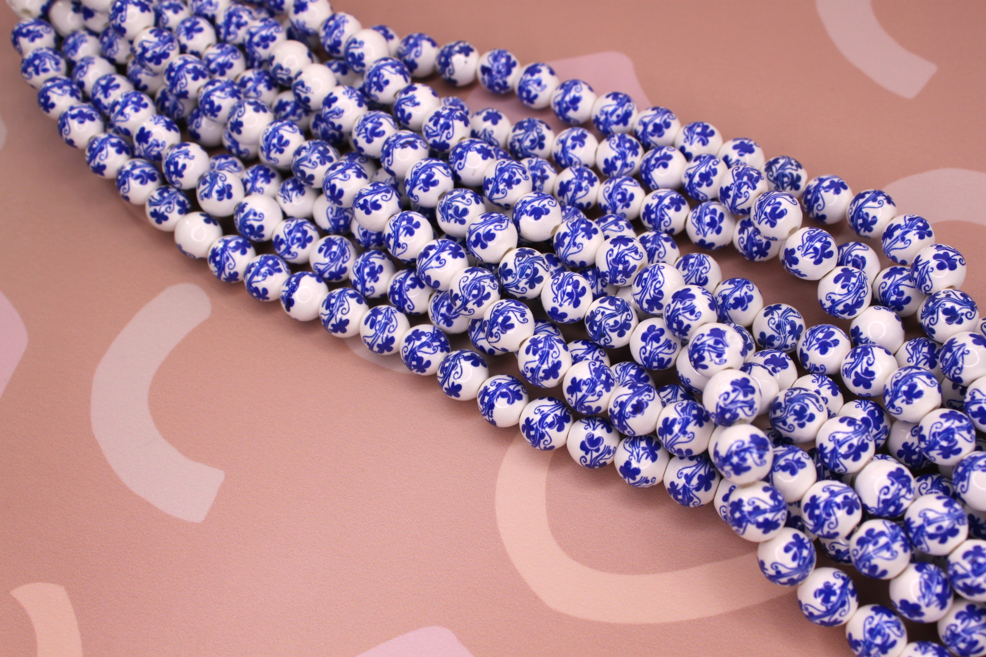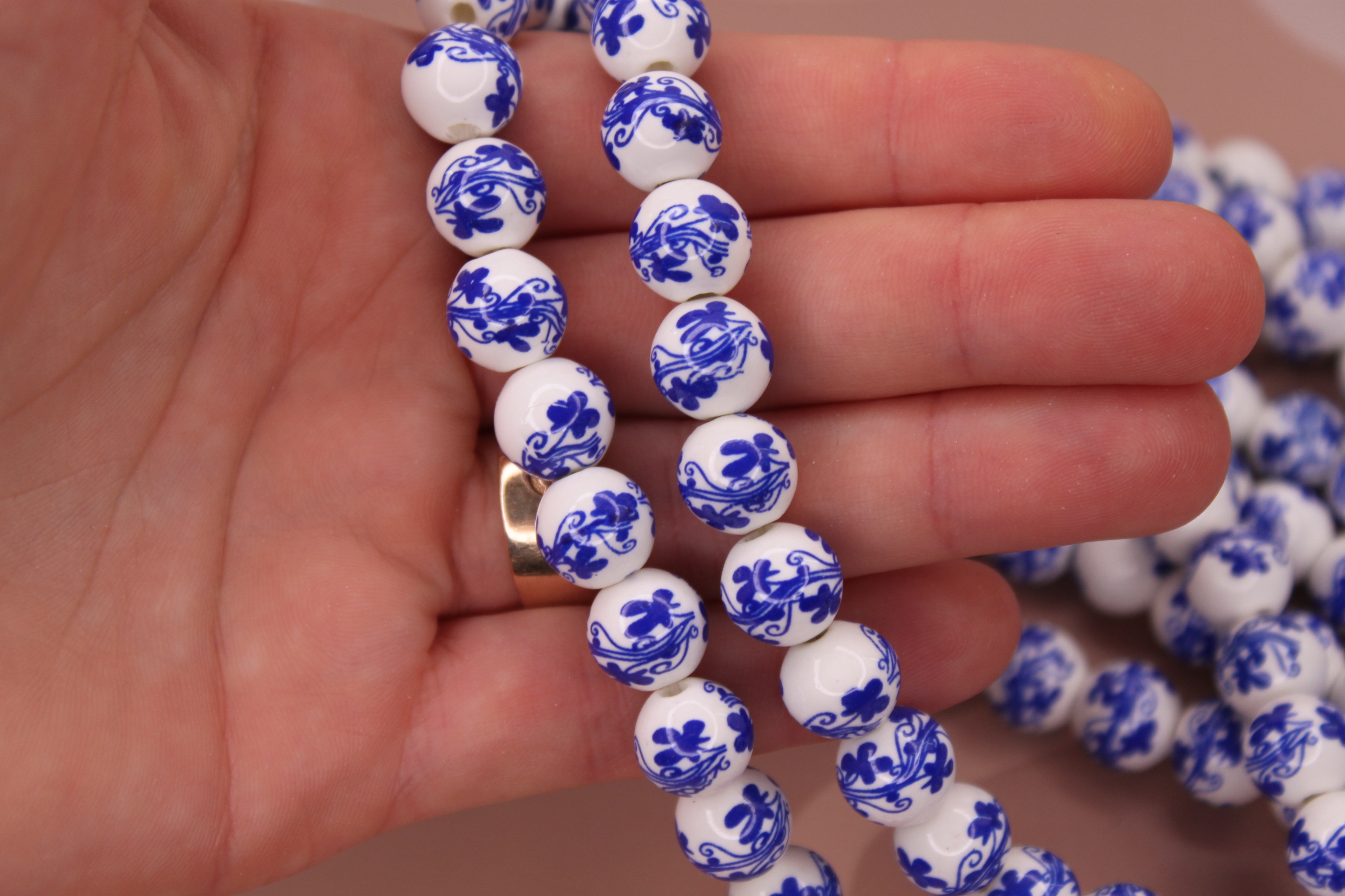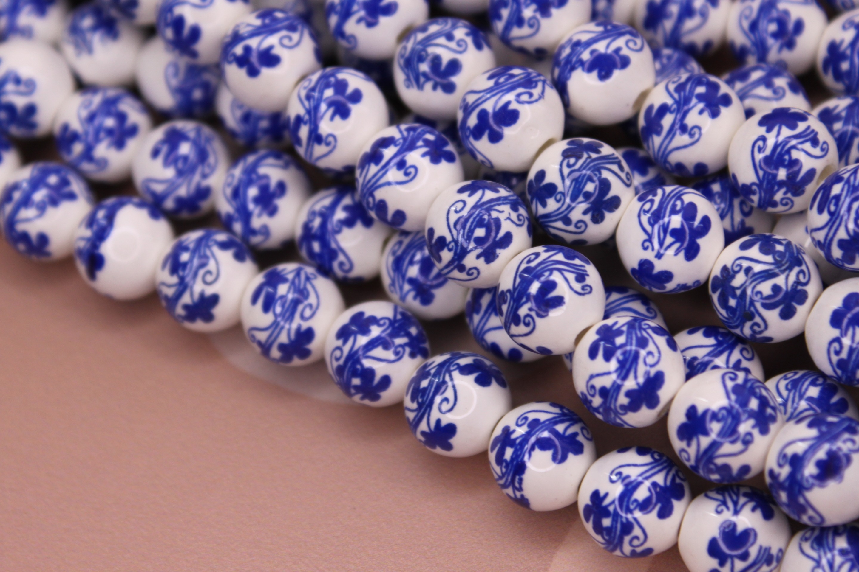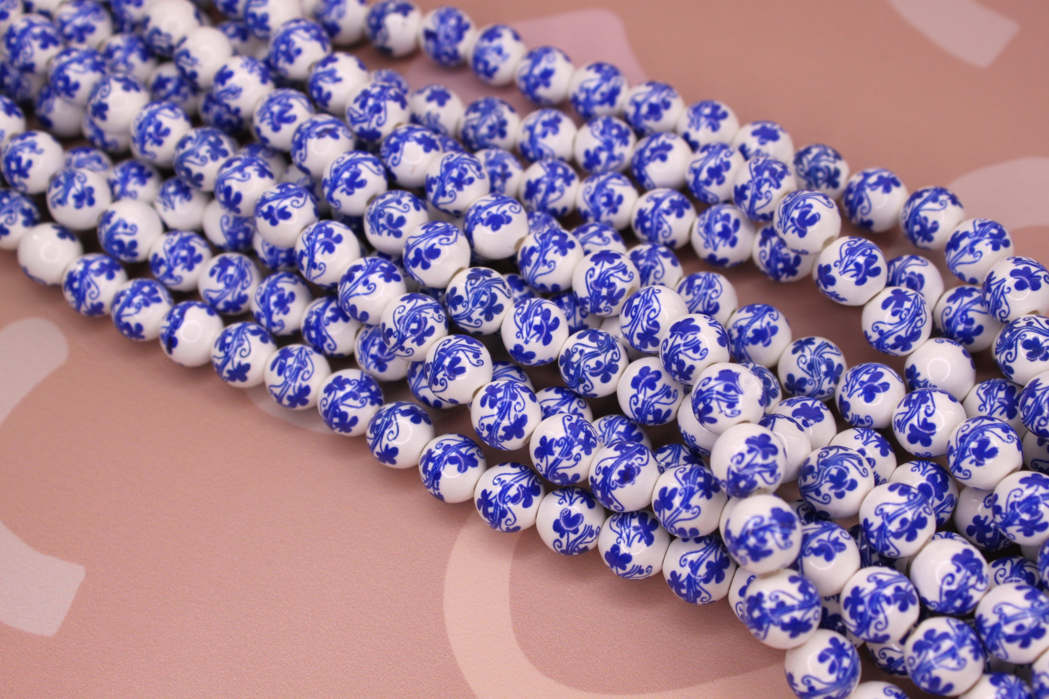 Бусины 10 мм гжель синяя (нить 34 см) керамика